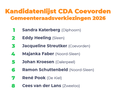 De CDA-fractie wil dat in de gemeente Coevorden anders doen. Wij roepen voortdurend op tot beter overleg met inwoners. Dat doen we vanavond niet voor de eerste keer. We verwachten daar echt stappen in van het college en de medewerkers. Neem initiatief, doe het samen lokaal.