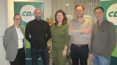 Met gepaste trots presenteren wij het nieuwe bestuur van CDA Meppel. Op de foto ziet u van links naar rechts: Froukje Lieuwes, Rogier Eenkhoorn, Claudia ter Veen, Tom Grolleman en Rob Polinder.