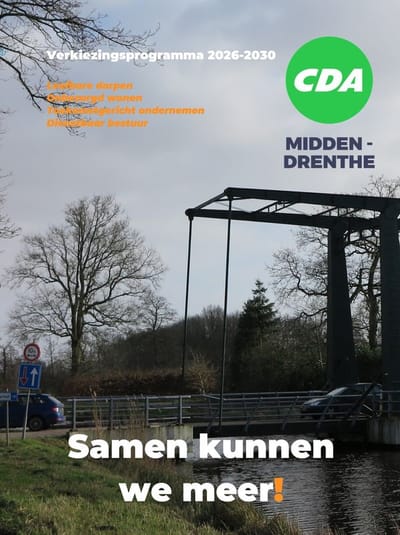 Voor u ligt het verkiezingsprogramma van het CDA Midden-Drenthe voor de periode 2026–2030. Een programma dat geworteld is in de christendemocratische kernwaarden die ons al meer dan 45 jaar richting geven: gespreide verantwoordelijkheid, solidariteit, gerechtigheid en rentmeesterschap. Waarden die ons verbinden met elkaar, en met de samenleving waarin we mogen leven.