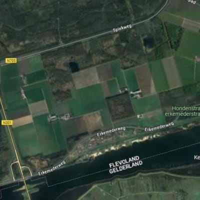 Foto: Een satellietfoto van het toekomstige(?) kazerneterrein bij Zeewolde (foto: Google Maps)