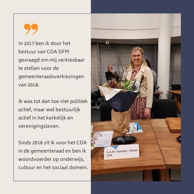 Het is tijd om onze fractieleden aan het woord te laten over het werk dat zij in en voor onze CDA-fractie doen. Deze keer is het woord aan ons fractielid Geeske Homma-Visser.