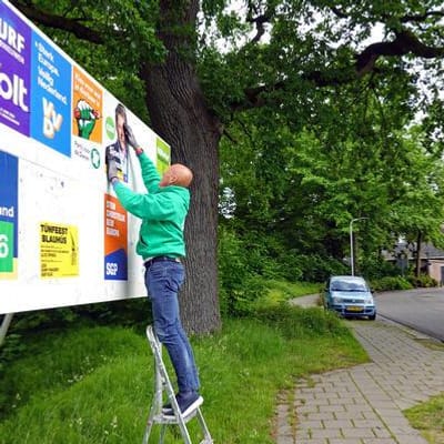 Brenda van Olphen ging met onze fractievoorzitter Jan van Zanden mee tijdens de laatste keer verkiezingsposters plakken.