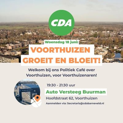 Welkom bij ons Politiek Café over Voorthuizen, voor Voorthuizenaren. Praat en denk mee over de toekomstplannen voor dit prachtige dorp!