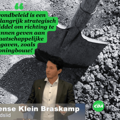 CDA-raadslid Biense Klein Braskamp is blij met de brede steun: “Grondbeleid is meer dan een technisch instrument. Het is een belangrijk strategisch middel waarmee we als gemeente richting kunnen geven aan urgente opgaven, zoals woningbouw.’’