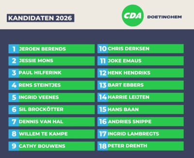 Op 3 december 2025 heeft de ALV van CDA Doetinchem de kandidatenlijst vastgesteld voor de gemeenteraadsverkiezing van 18 maart. Jeroen Berends zal als lijsttrekker ons team aanvoeren.