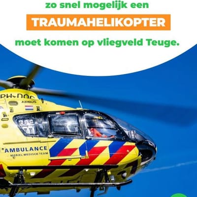Het CDA blijft van mening dat er zo snel mogelijk een traumahelikopter moet komen op vliegveld Teuge. Vanuit de sector is de noodzaak hiervoor duidelijk...