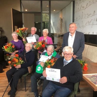 Onze leden van het eerste uur, dhr. G. Slettenhaar, dhr. J. Bakker, dhr. N. Borreman, dhr. J. Giesen, mw. I. Groot, dhr. A. Migchels en dhr. F. Robbers, konden we verrassen met een door partijleider Henri Bontenbal ondertekende oorkonde en een bloemetje.