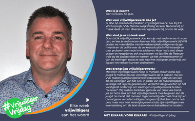 Wat is je naam?Bert Grevers, 56 jaar.Wat voor vrijwilligerswerk doe je?Ik doe op meerdere plekken vrijwilligerswerk, o.a. bij FC Winterswijk, VVN Winterswijk (Veilig Verkeer Nederland)...