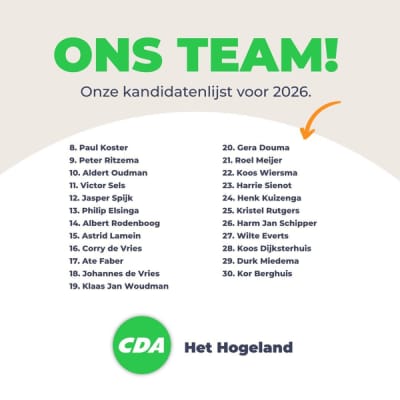 CDA Het Hogeland heeft kandidaten uit de hele gemeente, ook uit jouw regio.