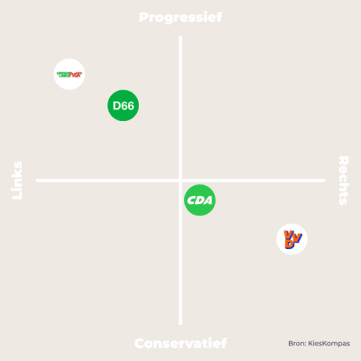 Wil je CDA stemmen, maar twijfel je nog tussen ons en een andere partij? De KiesCoach helpt je geheel bevooroordeeld om een inhoudelijke keuze tussen het CDA en GroenLinks-PvdA, D66 of de VVD te maken.
