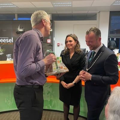 Gisteren mochten we onze nieuwe burgemeester Martijn Derks installeren. Wij zijn ongelofelijk blij met zijn komst en overhandigden hem een 'Beesels plengske' met een Beesels-Ruivers...