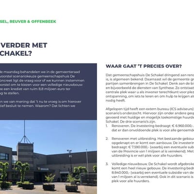 Aanstaande maandag behandelen we in de gemeenteraad het Raadsvoorstel scenariokeuze gemeenschapshuis De Schakel. Concreet ligt de vraag voor of we kunnen instemmen met het voorstel...