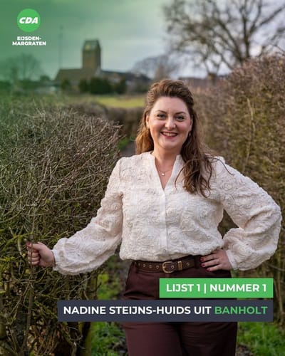 Nadine wil dat we blijven beseffen hoe bijzonder onze gemeente is. Onze dorpen, verenigingen, natuur en landschap maken Eijsden-Margraten uniek, maar ook kwetsbaar. Daarom zet zij zich met daadkracht en lef in voor verbinding en een sterke gemeenschap.