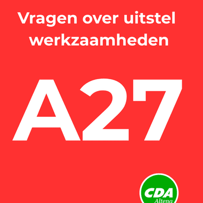 De CDA fractie heeft vragen gesteld aan het college over de berichtgeving in de media dat de werkzaamheden aanpak A27 zijn uitgesteld.