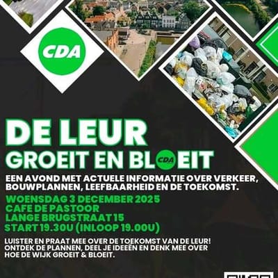 Woensdag 3 december 2025 organiseren we een inwonersavond vol actuele informatie over verkeer, bouwplannen, leefbaarheid en de toekomst van De Leur.