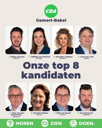 Invoer 506873Tijdens de drukbezochte Algemene Ledenvergadering van het CDA Gemert-Bakel op 18 november 2025 zijn de eerste 8 kandidaten gekozen voor de komende gemeenteraadsverkiezingen van...