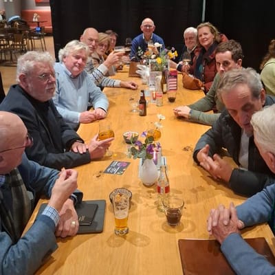 Het is traditie dat na zo’n vergadering nog even wordt nagepraat, onder het genot van een drankje, in de foyer van het CC Jan van Besouw (zie foto).