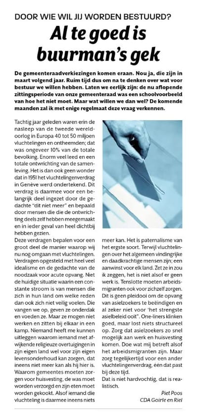 Lees hier het artikel van Piet Poos uit Goirles Belang.