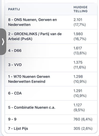 Bij de gemeenteraadsverkiezing van gisteren heeft het CDA-Nuenen c.a. een extra zetel gewonnen!