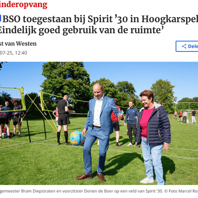 Eerder werd een verzoek voor BSO bij Spirit afgewezen door de gemeente Drechterland, vanwege een strikte interpretatie van de Alcoholwet. Tegelijkertijd kon in buurgemeente Stede Broec, bij sportvereniging De Zouaven, wél BSO in de kantine plaatsvinden. Dankzij aanhoudende inzet van CDA-raadslid Roy Hof komt daar nu verandering in.