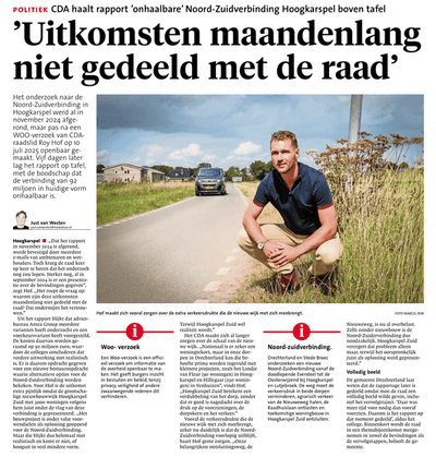 De gemeenteraad heeft midden in de vakantieperiode uiteindelijk het rapport over de Noord-Zuid verbinding ontvangen. Ondanks herhaalde vragen hierover (ook van andere partijen) kwam er geen rapport naar voren. Helaas pas na een WOB (Wet Openbaarheid Bestuur) verzoek van het CDA bleek "ineens" het rapport toch te bestaan.