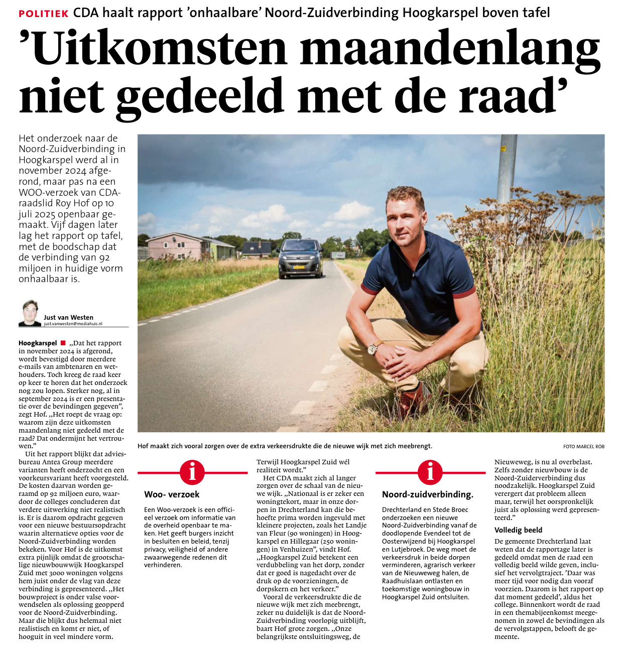 De gemeenteraad heeft midden in de vakantieperiode uiteindelijk het rapport over de Noord-Zuid verbinding ontvangen. Ondanks herhaalde vragen hierover (ook van andere partijen) kwam er geen rapport naar voren. Helaas pas na een WOB (Wet Openbaarheid Bestuur) verzoek van het CDA bleek "ineens" het rapport toch te bestaan.