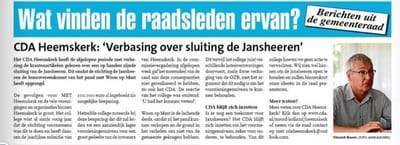 De gemeente maakt zich druk om vergrijzing en voldoende ontmoeting voor oud en jong. Maar dan toch de Jansheeren sluiten? Wat is de logica? Vraagt Vincent Noom (CDA) zich terecht af.