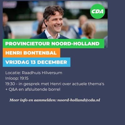 Vrijdag 13 december a.s. komt onze politiek leider Henri Bontenbal naar Hilversum en Wijdemeren in het kader van zijn provincietour. Die dag zal hij o.a...