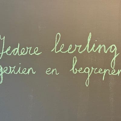 Lonneke Lamers besluit de rondleiding met een boodschap die in de lerarenkamer op het bord staat: “Iedere leerling gezien en begrepen.”