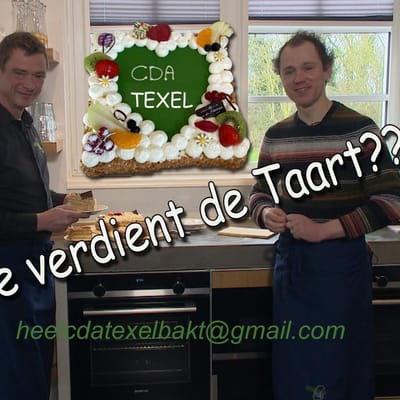De kandidaten van het CDA duiken de keuken in. De partij wil Texelaars die wel eens in het zonnetje gezet mogen worden of wat extra aandacht verdienen een zelfgebakken taart geven. Denk aan die vrijwilliger die die zich enorm inzet voor jouw vereniging, sportclub of kerk. Een mantelzorger die zorgt voor een ziek familielid, vriend of buur. Die buurman of -vrouw die altijd voor iedereen klaar staat. Of juist die vriend of vriendin die het moeilijk heeft en wel een hart onder de riem kan gebruiken.