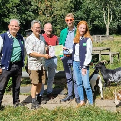Ter gelegenheid van het 10-jarige bestaan van kinderboerderij De Olievaar heeft het CDA Uithoorn zondagmiddag een geit geadopteerd. Tijdens de feestelijke middag nam CDA-burgerlid Maayke Goossens het adoptiecertificaat in ontvangst van beheerder Willem Körnmann. “Een geit is nieuwsgierig, eigenzinnig en een groepsdier, eigenschappen waar het CDA zich in kan vinden. Het past bij onze partij die afgelopen periode in de oppositie zat en haar eigen koers bepaalde.”