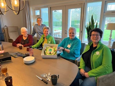 En in Oudleusen heeft het vrijwilligersbestuur van De Wiekelaar van Wim Prinsse de welverdiende taart gekregen.