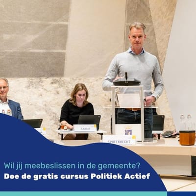 Tijdens deze cursus krijg je in twee avonden een kijkje achter de schermen van de gemeentepolitiek. Je maakt kennis met de gemeenteraad, leert hoe besluiten worden genomen en ontdekt hoe je zelf actief kunt bijdragen.