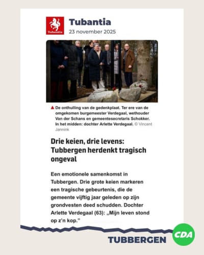 Voor CDA Tubbergen is dit monument meer dan een gedenkteken. Het is een teken van respect voor bestuurders die zich met volle overtuiging hebben ingezet voor de gemeenschap, en een tastbare herinnering aan een ingrijpende gebeurtenis in de geschiedenis van onze gemeente.