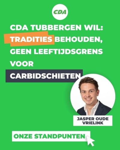 Tijdens de raadsvergadering van gisteravond heeft ons raadslid Jasper Oude Vrielink namens het CDA samen met Keerpunt22 een amendement ingediend op de vernieuwde APV. Dit amendement gaat specifiek over het carbidschieten. Een traditie die diepgeworteld is in onze lokale Tubbergse cultuur.