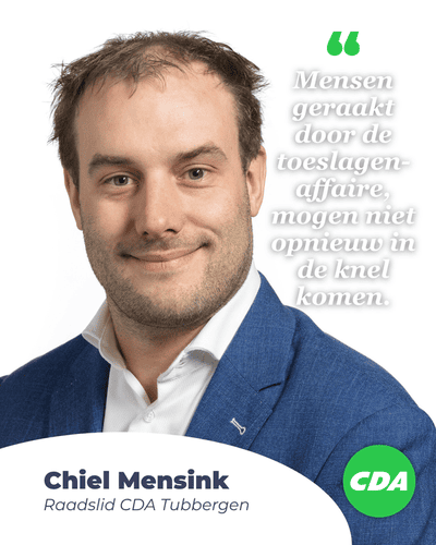 Voor CDA Tubbergen is dit belangrijk. Inwoners die al geraakt zijn door de toeslagenaffaire mogen niet opnieuw in de knel komen. De overheid moet naast mensen staan en recht doen aan hun situatie.