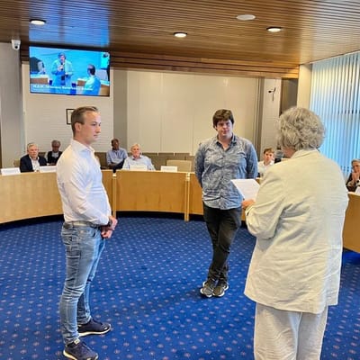 Zojuist zijn Ruben Tijhuis (CDA) en Rutger Plegt (Lokaal Sterk) door burgemeester Haverkamp beëdigd als commissieleden van de gemeente Tubbergen.