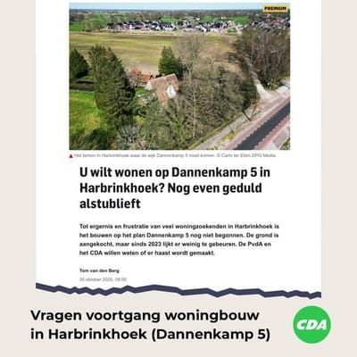 Jasper Oude Vrielink (CDA): “Heel frustrerend. Inmiddels al meerdere keren aandacht gevraagd voor de voortgang van het woningbouwproject op Dannenkamp 5. De schop moet zo snel mogelijk de grond in. Niet uit te leggen aan ingeschrevenen en het dorp Harbrinkhoek-Mariaparochie.”