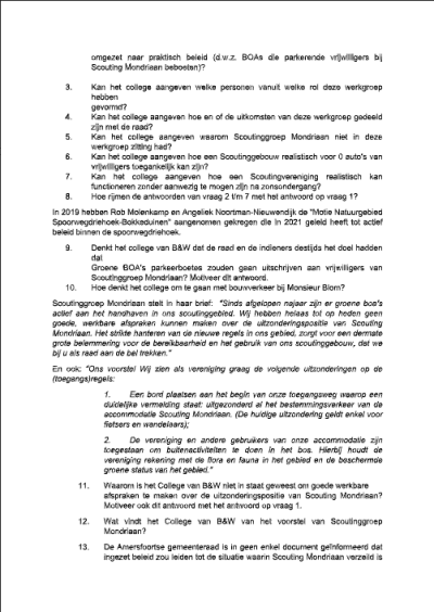 Scoutinggroep Mondriaan vervult al jarenlang een belangrijke rol voor kinderen en jongeren in Amersfoort, midden in het natuurgebied van de Spoorwegdriehoek. Toch worden vrijwilligers sinds afgelopen najaar geconfronteerd met parkeerboetes en regels die het functioneren van de scouting ernstig belemmeren.
