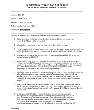 Het CDA wil duidelijkheid voor inwoners en ondernemers en heeft daarom schriftelijke vragen gesteld aan het college.