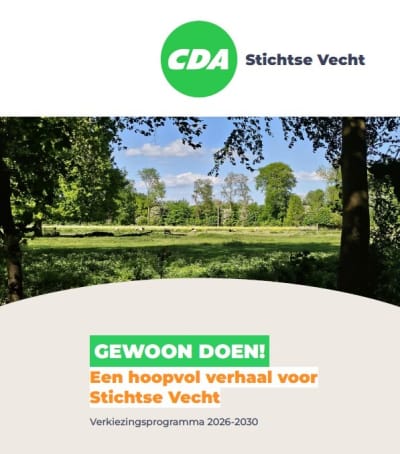 Het CDA Stichtse Vecht zet zich in voor vitale kernen, leefbaarheid van het platteland en ruimte voor vrijwilligers. Als lokale partij werken we aan oplossingen voor vraagstukken die u direct raken: rond leefbaarheid, veiligheid, bereikbaarheid en toegankelijkheid. We laten met een hoopvol perspectief zien dat het anders kan. Anders en beter. Die verandering begint bij de keuzes die we zelf maken.