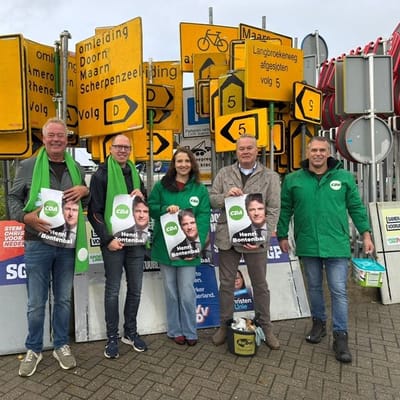 Een vast ritueel bij verkiezingen is het plakken van de verkiezingsposters. Onder stormachtige omstandigheden plakten kandidaten en campagnevrijwilligers zaterdagmorgen vroeg op het terrein van de gemeentewerf liefdevol de "Henri" posters op de vertrouwde metalen borden.