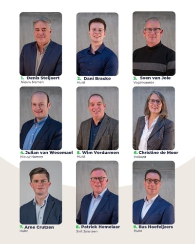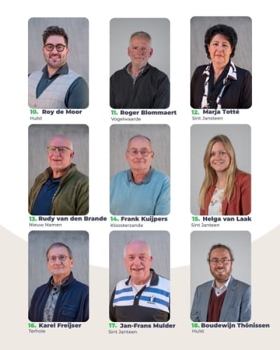 Daarnaast bevat de lijst kandidaten die midden in de samenleving staan, geworteld zijn in hun dorp of wijk en dagelijks in contact staan met inwoners, verenigingen en ondernemers. Deze brede vertegenwoordiging zorgt ervoor dat de stem van heel Hulst – van stad tot polder, van kern tot buitengebied – gehoord wordt.