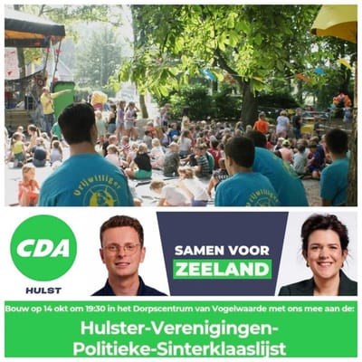 Het CDA Hulst werkt aan haar verkiezingsprogramma – dé kans voor verenigingen in onze gemeente om een boodschap mee te geven. We nodigen jullie uit om met je team(s) van ongeveer 2-4 personen op dinsdag 14 oktober van 19:30-21:30 met ons in gesprek te gaan in het Dorpscentrum van Vogelwaarde aan de Populierenstraat. We organiseren de avond als een Pub-quiz. We mikken op een mix van jong en ervaren, links en rechts, allemaal samen aan tafel. We nodigen ook expliciet jeugdleden uit. En het maakt ons niets uit welke politieke kleur je hebt.