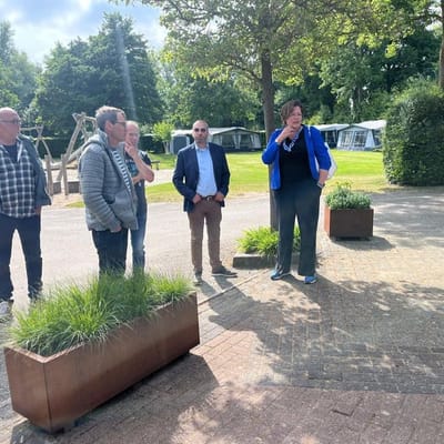 Onze wethouder bezocht o.a. mini-camping De Welblok te Oosterland en boerderijwinkel Fruit & Zo te Nieuwerkerk. Op de foto: Alwijn ontvangen door HISWA-RECRON voorzitter Marieke Braber-Schot op camping De Vierbannen, Ouwerkerk.