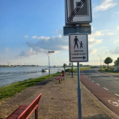 Bij sommige drukke delen op de Rivierdijk is het beter er niet te lopen als er geen vrijliggend wandelpad is.