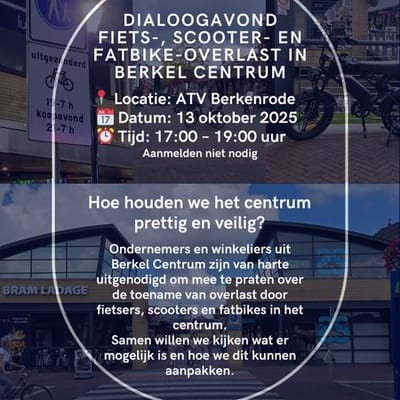 Om samen te kijken hoe we Berkel Centrum prettig en veilig kunnen houden, organiseren we op maandag 13 oktober 2025 een dialoogavond bij ATV Berkenrode.