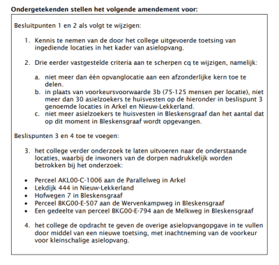 Het complete Amendement kleinschalige asiellocaties CDA