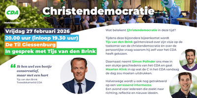 Tijdens deze bijzondere bijeenkomst wordt Tijs van den Brink geïnterviewd over zijn visie op de toekomst van de christendemocratie én over de persoonlijke vraag waarom hij zelf voor het CDA heeft gekozen.