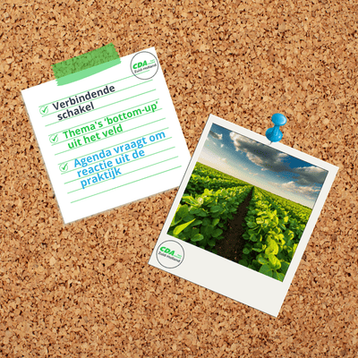 Wij komen op voor de belangen van de landbouw en de groene ruimte. Samen met boeren, bestuurders en betrokkenen zorgen we dat de stem van de praktijk gehoord wordt binnen het CDA. We laten onze politieke vertegenwoordigers weten wat er speelt. Zo zorgen we ervoor dat zij op tijd in actie kunnen komen.